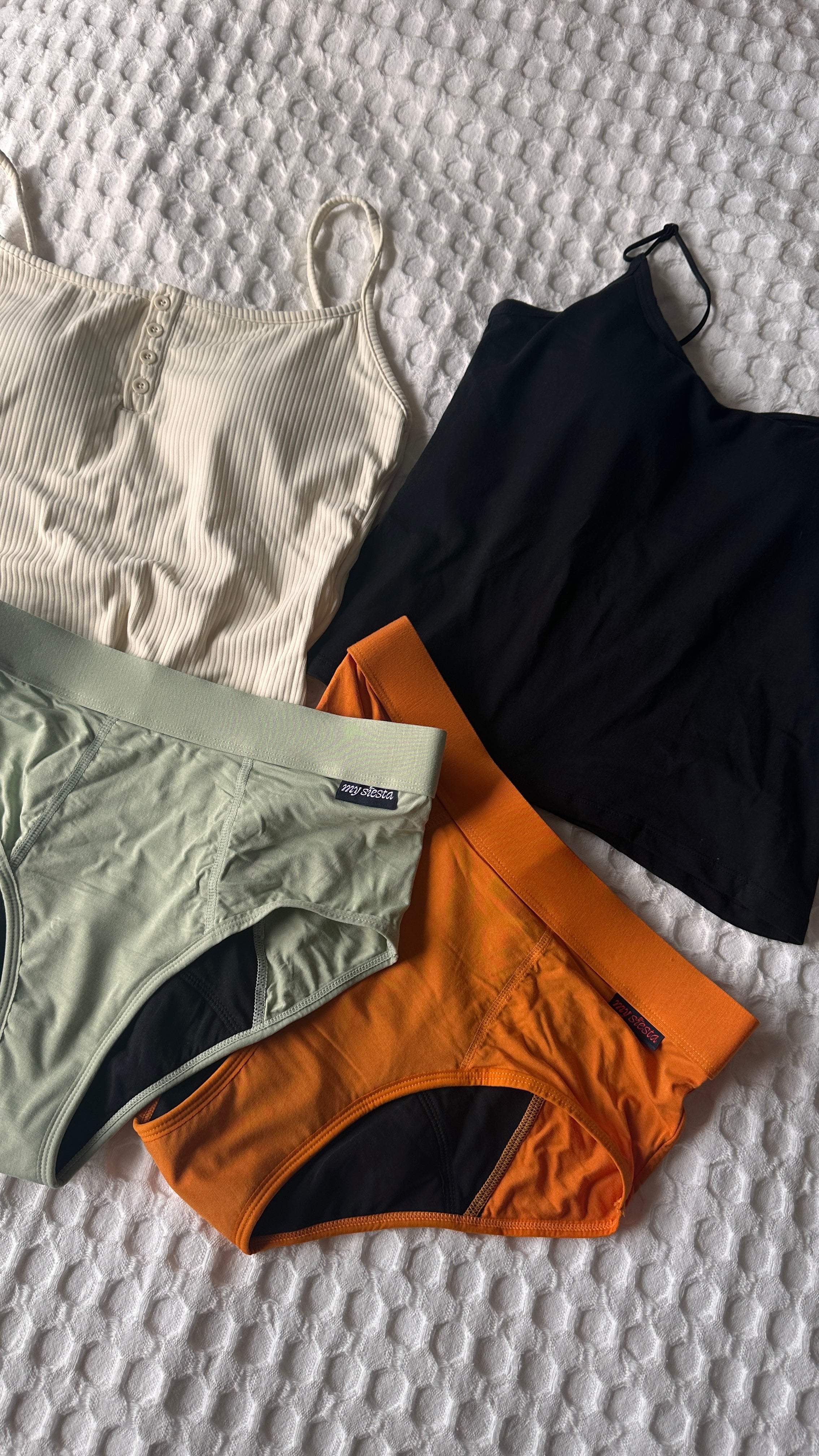 Want to go all-in? 8-9 pairs will cover your entire cycle comfortably and beyond (Many of our customers love their My Siesta undies so much, they’ve become part of their regular underwear rotation - perfect for everyday comfort).
